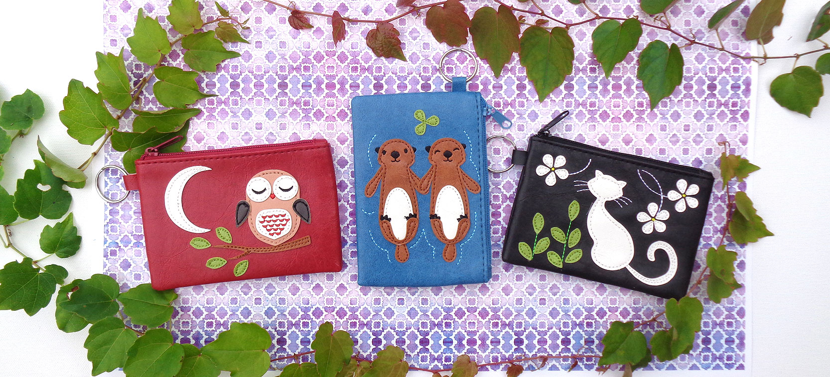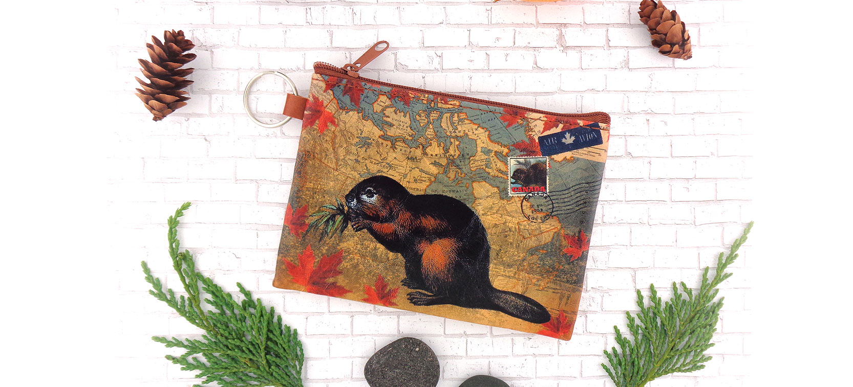 Made with Eco-friendly toxic-free vegan materials, these coin purses are fun, playful, cheerful and affordable. They feature motifs of animals (elephant, horse, bear, moose, fox, polar bear, beaver, hedgehog and sea otters), birds and flowers. The styles ranges from small coin purses, medium pouches to pencil pouches and makeup pouches.