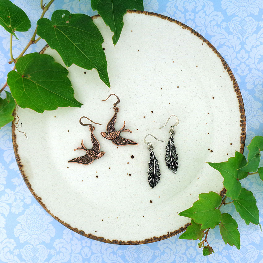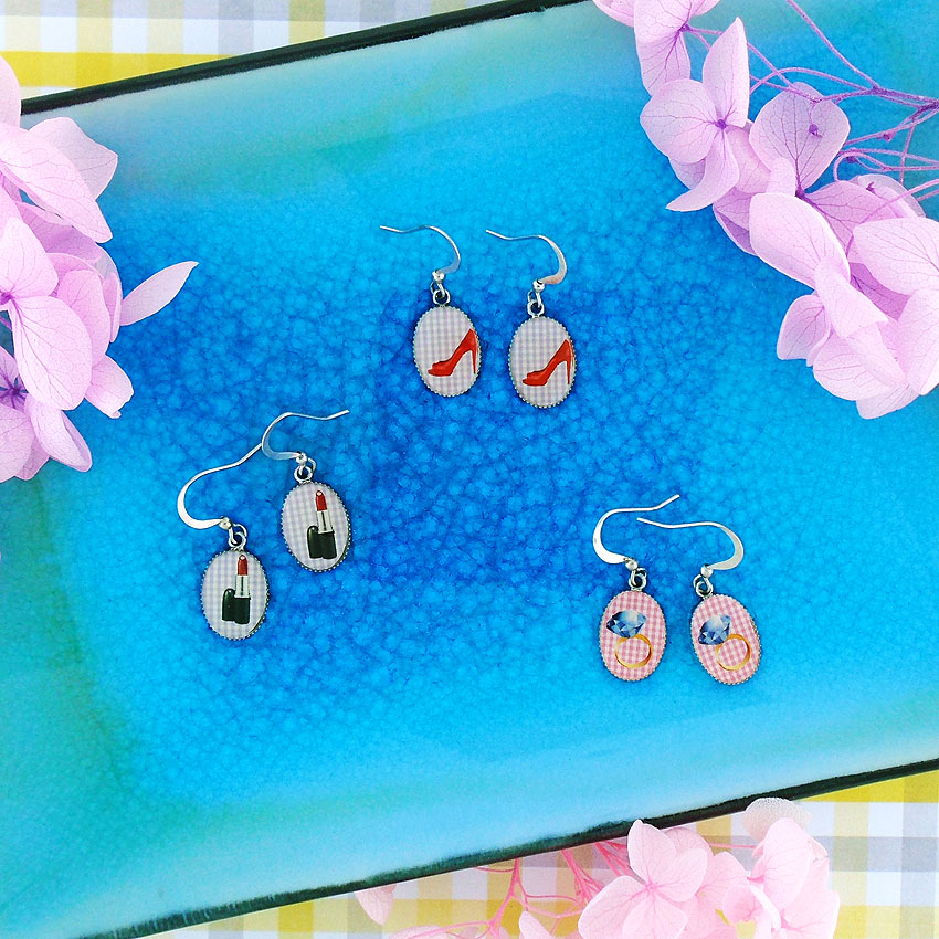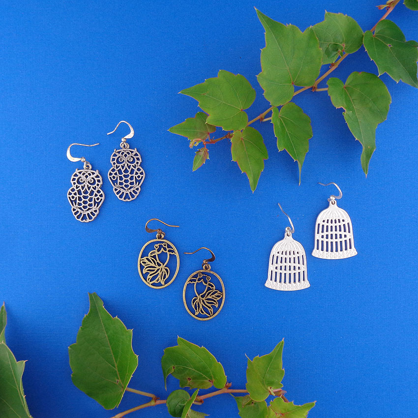 Made with Eco-friendly toxic-free vegan materials, these fashion earrings are fun, unique, cheerful, well made and well priced. They feature motifs of animals, birds, flowers and playful retro objects. The styles ranges from small stud earrings, dainty drop earrings, resin flower clip on earrings to statement making light weight filigree earrings.